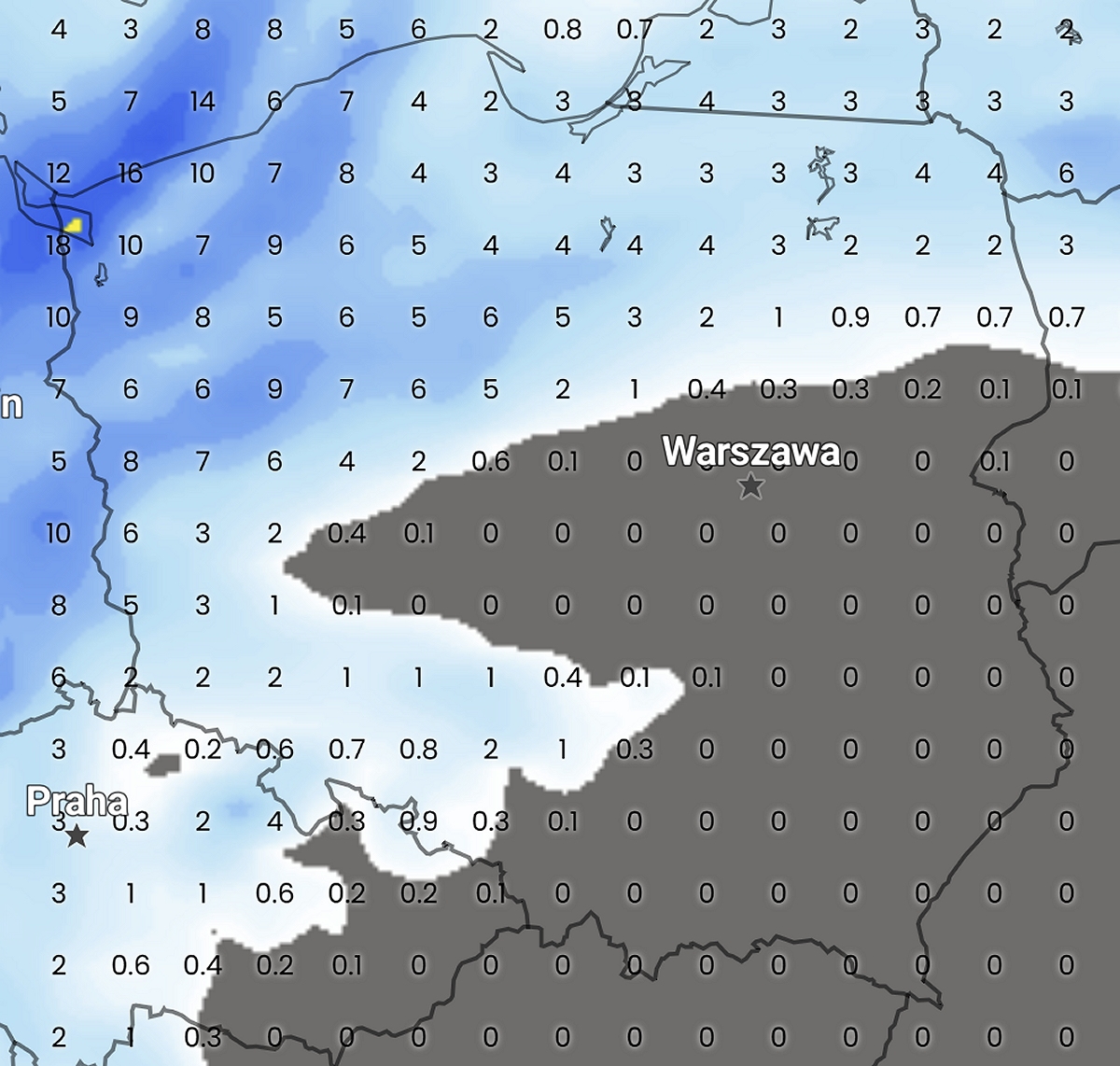 Ze względu na to, że fronty atmosferyczne przyniosą nie tylko wilgotne, ale też niestabilne powietrze polarno-morskie, to trzeba się liczyć z tym, że popołudniami i wieczorami miejscami możliwe są słabe burze.