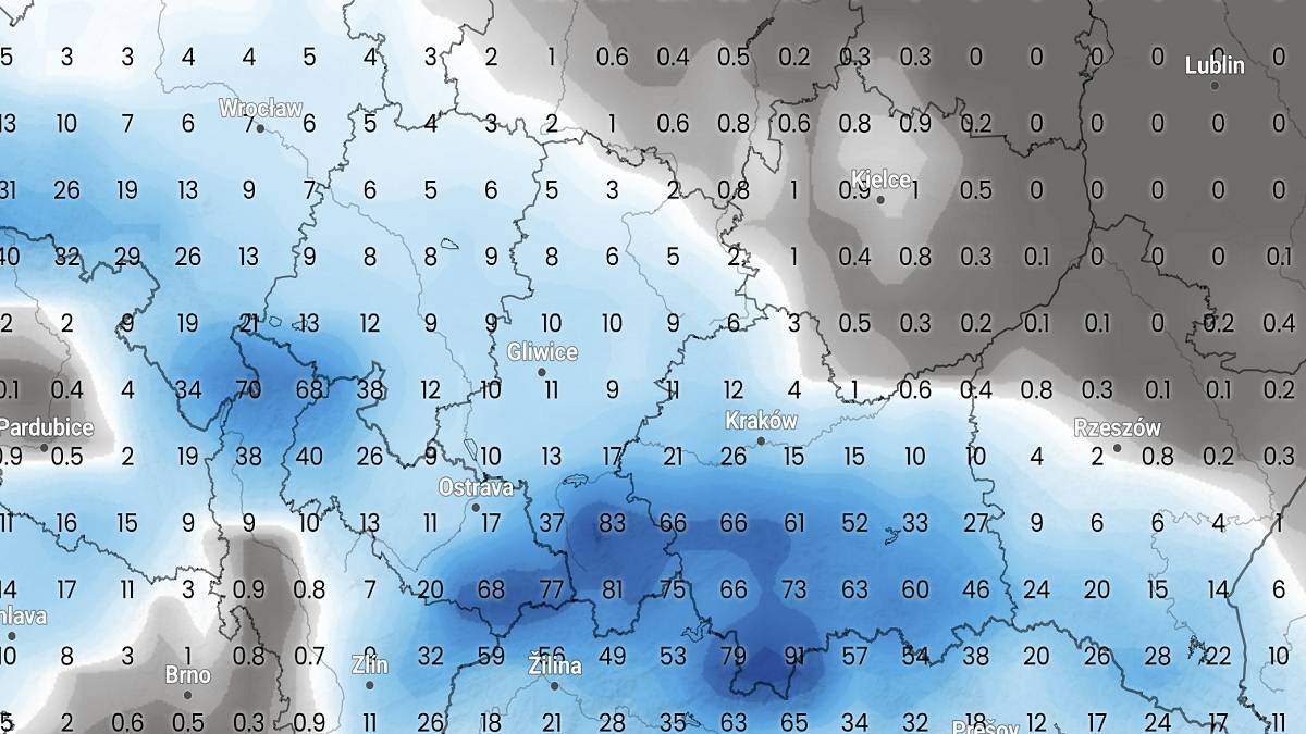 Prognozowana ilość śniegu 30 marca na południu Polski. Fot. imweather.comWszystko zależeć będzie od wysokości temperatury, ponieważ wystarczy różnica 0,5 stopnia, aby zmienił się nie tylko rodzaj opadów, ale też konsystencja śniegu, a przez to jego grubość. Może się więc zdarzyć, że w niektórych miejscach zamiast śnieżyc przejdą ulewy.